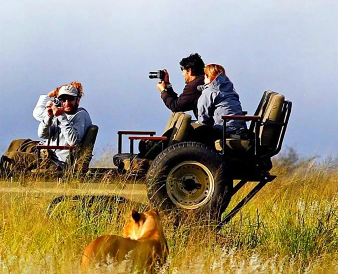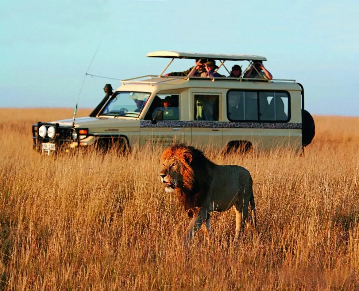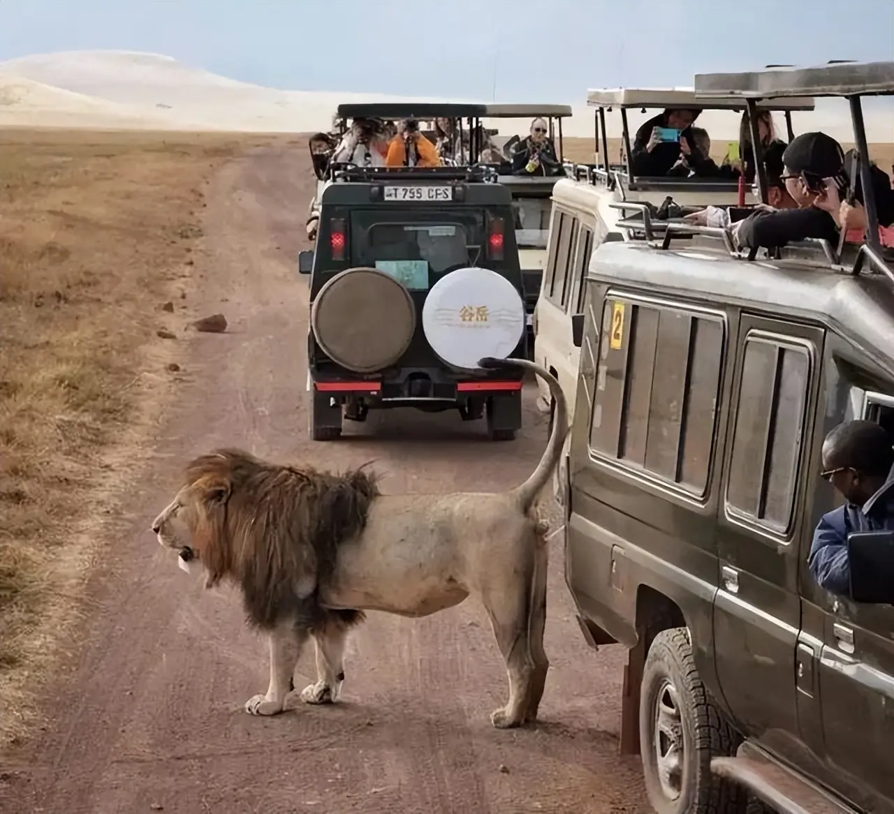 辽阔的非洲草原上,一辆敞篷越野车缓缓驶过金黄色的草丛。几米开外,一头雄狮懒洋洋地抬起眼皮瞥了瞥这个移动的金属盒子,又继续打它的盹儿。车里的游客屏住呼吸,相机快门声此起彼伏,镜头距离狮子的胡须不过五六米。
