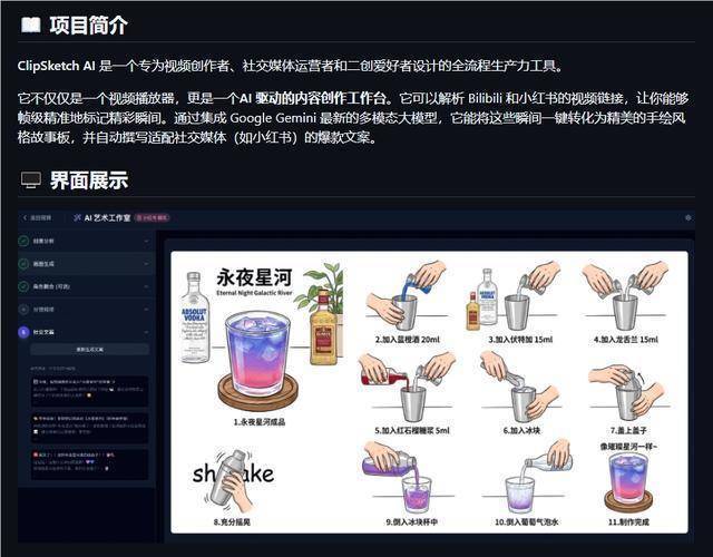 3、B站小红书视频一键变手绘分镜!开源神器ClipSketch AI,短视频创作者省时利器