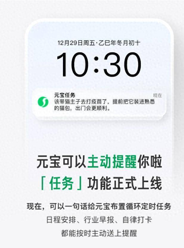 2、元宝 AI任务提醒 功能上线 覆盖生活工作多场景,一句话搞定定时安排